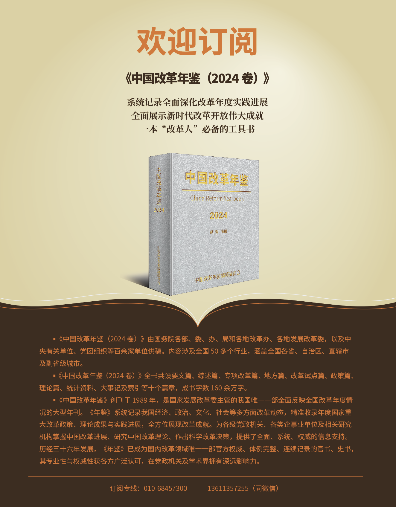 《中國改革年鑒》創(chuàng)辦于1989年,原名《中國經濟體制改革年鑒》。是全面反映中國改革年度進展情況的國家級大型年刊。