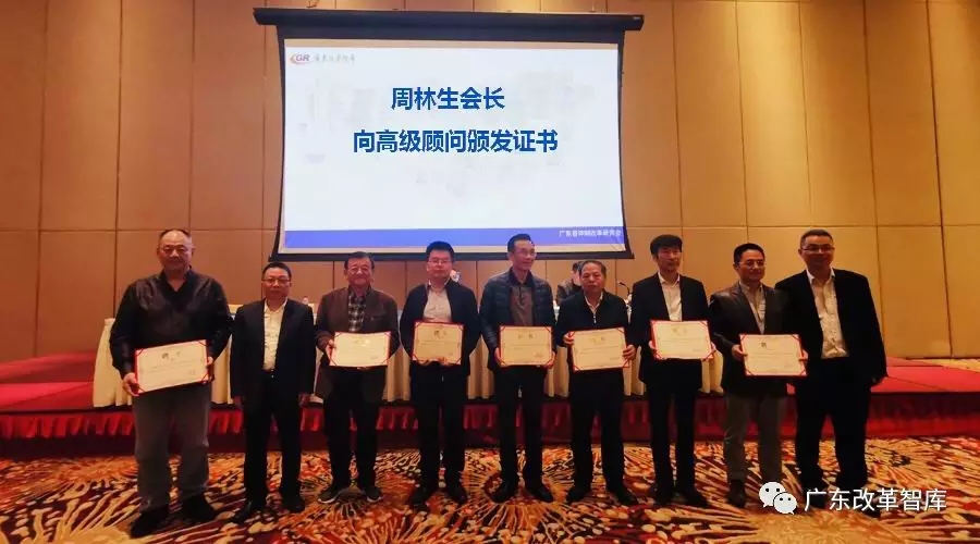 廣東省體制改革研究會名譽(yù)會長、省人大原副主任陳堅(jiān),名譽(yù)會長、原廣東省體改委主任易振球出席第八屆會員代表大會,為第八屆理事會選舉的會長、執(zhí)行會長、副會長、秘書長、監(jiān)事頒發(fā)證書。周林生會長為高級顧問頒發(fā)了聘書。