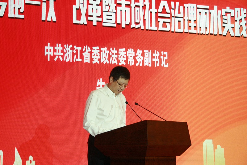 中共浙江省委政法委常務(wù)副書記朱晨在致辭中指出,這次研討會為推進(jìn)市域社會治理現(xiàn)代化和“最多跑一次”改革搭建了交流平臺,提供了難得的機(jī)遇。在今后的改革中,一是要進(jìn)一步提高站位,拉高標(biāo)桿,加快推進(jìn)社會治理現(xiàn)代化;二是進(jìn)一步固化經(jīng)驗集成創(chuàng)新,總結(jié)麗水市基層社會治理的成功經(jīng)驗,及時將其上升為長效機(jī)制,進(jìn)一步提升市域社會治理社會化、法治化、智能化和專業(yè)化的水平,爭當(dāng)市域社會治理現(xiàn)代化的排頭兵;三是進(jìn)一步凝聚共識形成合力,以縣級矛調(diào)中心建設(shè)為抓手,按照整體自治的要求,加快推進(jìn)社會治理領(lǐng)域“最多跑一地”改革,構(gòu)建完善一中心四平臺基層社會治理新模式,推動形成共建、共治、共享的社會治理新格局。