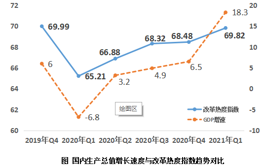 4月21日,中國經(jīng)濟(jì)體制改革研究會在京發(fā)布《2021年第一季度改革熱度第三方評估報告》。報告顯示,2021年第一季度改革熱度指數(shù)為69.82,比上一季度增加1.34,連續(xù)4個季度保持穩(wěn)定回升態(tài)勢;比去年同期增加4.61,已經(jīng)基本接近疫情前2019年第4季度69.99的水平。