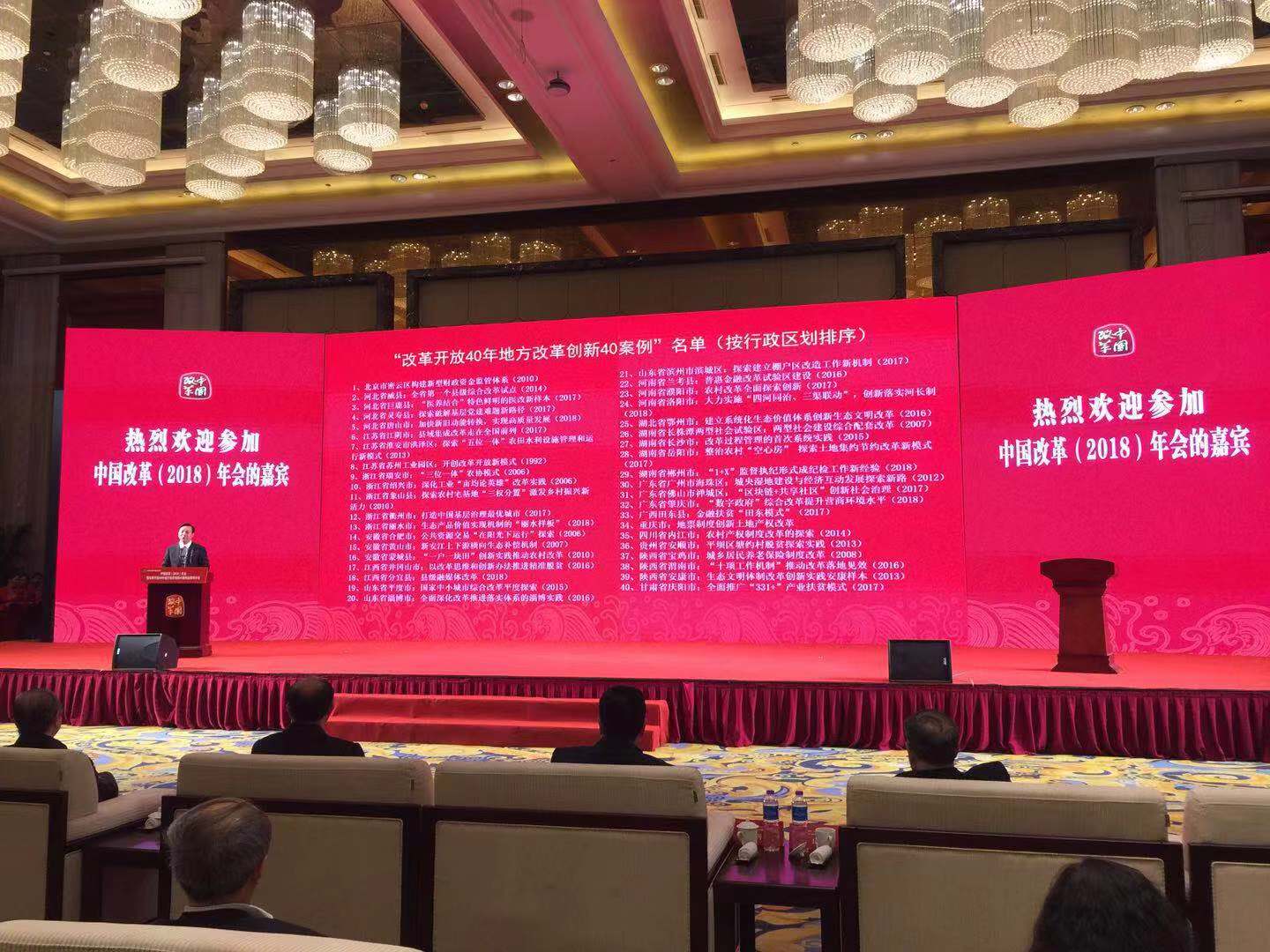 為響應(yīng)中央關(guān)于慶祝改革開(kāi)放40年號(hào)召,貫徹習(xí)近平總書(shū)記在慶祝改革開(kāi)放40周年大會(huì)重要講話(huà)精神,中國(guó)經(jīng)濟(jì)體制改革雜志社舉辦的“改革開(kāi)放40年地方改革創(chuàng)新40案例”(簡(jiǎn)稱(chēng)“40年40案例”)征集活動(dòng)于12月27日在江蘇省江陰市舉辦的“中國(guó)改革(2018)年會(huì)”上,揭曉最終名單。180多位來(lái)自全國(guó)20多個(gè)省區(qū)市的各級(jí)改革部門(mén)負(fù)責(zé)人參加了發(fā)布會(huì)議。“改革開(kāi)放40年地方改革創(chuàng)新致敬案例”名單同時(shí)發(fā)布。