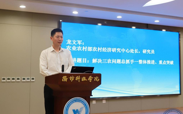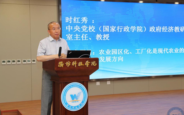 壽光市人大常委會副主任、濰坊科技學(xué)院校長李昌武在致辭中表示,濰坊市委副書記、壽光市委書記林紅玉同志在全市三級干部會議上,對我校提出全面提升辦學(xué)水平,提高社會服務(wù)能力,加快推進(jìn)碩士點培育建設(shè)的要求。為落實林書記講話要求,加強(qiáng)區(qū)域經(jīng)濟(jì)和“壽光模式”研究,壽光市人民政府與中國經(jīng)濟(jì)體制改革研究會等聯(lián)合成立的“新時代鄉(xiāng)村振興與區(qū)域經(jīng)濟(jì)發(fā)展研究院”掛靠學(xué)院,引進(jìn)了大批高層次人才,形成了一批富有創(chuàng)造性、建設(shè)性的學(xué)術(shù)研究成果和決策咨詢意見,“壽光模式”研究成果在國家發(fā)改委《改革內(nèi)參》刊發(fā)。成立了國家二級學(xué)會農(nóng)學(xué)思想與《齊民要術(shù)》研究會,連續(xù)成功舉辦了10屆中華農(nóng)圣文化國際研討會,師生原創(chuàng)52集動畫片《農(nóng)圣賈思勰》在中央電視臺和山東衛(wèi)視播出。學(xué)校組建了博士、教授農(nóng)學(xué)科研服務(wù)團(tuán)隊,成立了蔬菜產(chǎn)業(yè)學(xué)院、農(nóng)業(yè)技術(shù)培訓(xùn)基地,自主研發(fā)蔬菜品種28個,在全國7個省區(qū)建立了育種基地,開發(fā)運(yùn)營了壽光市農(nóng)業(yè)智慧監(jiān)管服務(wù)公共平臺,打造了覆蓋設(shè)施農(nóng)業(yè)全產(chǎn)業(yè)鏈的專業(yè)服務(wù)體系,為創(chuàng)新提升“壽光模式”和鄉(xiāng)村振興戰(zhàn)略的實施提供了有力支撐。