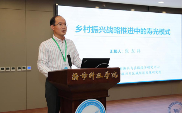 新時代鄉(xiāng)村振興與區(qū)域經(jīng)濟(jì)發(fā)展研究院執(zhí)行院長、經(jīng)濟(jì)管理學(xué)部主任、教授、博士生導(dǎo)師張友祥代表“壽光模式”研究課題組從“壽光模式”的內(nèi)涵和特征、形成機(jī)制、實踐價值等方面作了研究成果匯報。
