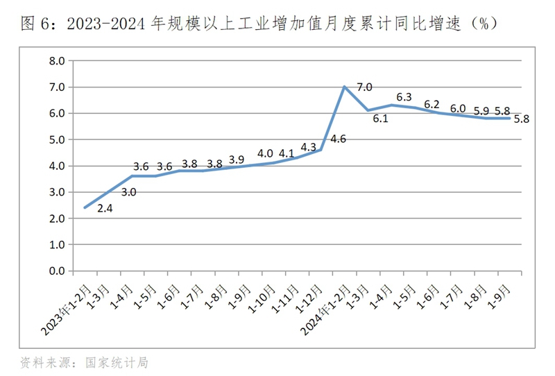 (一)工業(yè)生產(chǎn)增速基本上持續(xù)回落,9月份回升。規(guī)模以上工業(yè)增加值增速年初開局走高,1-2月份同比增長(zhǎng)7.0%,3月份增速回落,4月份增速回升,但自此以后持續(xù)走低,到8月份增速為4.5%,9月份增速呈現(xiàn)回升,同比增長(zhǎng)5.4%。