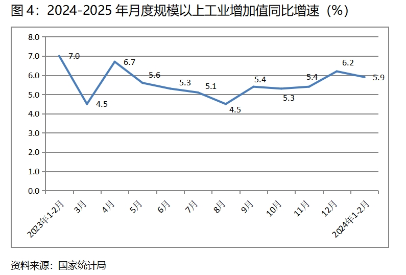(一)工業(yè)增速由升轉(zhuǎn)落。1-2月份,規(guī)模以上工業(yè)增加值同比增長(zhǎng)5.9%,比上年12月份增長(zhǎng)6.2%回落了0.3個(gè)百分點(diǎn),上年12月份比上年11月份回升了0.8個(gè)百分點(diǎn)。1-2月份工業(yè)增速出現(xiàn)回落,有上年同期高基數(shù)的因素,如按兩年平均增速計(jì)算,增速為6.4%,說明規(guī)模以上工業(yè)出現(xiàn)了積極的回升勢(shì)頭。值得關(guān)注的是,在全部規(guī)模以上工業(yè)增速回落的同時(shí),規(guī)模以上制造業(yè)和私營(yíng)企業(yè)增速卻保持了回升,1-2月份規(guī)模以上制造業(yè)同比增速比上年12月份回升0.5個(gè)百分點(diǎn),私營(yíng)企業(yè)回升1.4個(gè)百分點(diǎn)。